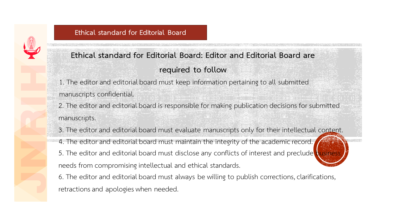 มาตรฐานจริยธรรมสำหรับกองบรรณาธิการ (Editorial Board)