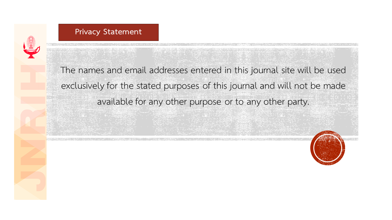 - ผู้เขียนต้องรับรองว่าบทความดังกล่าวไม่เคยได้รับการตีพิมพ์มาก่อน และไม่ได้อยู่ระหว่างการพิจารณาตีพิมพ์ในวารสารฉบับอื่น