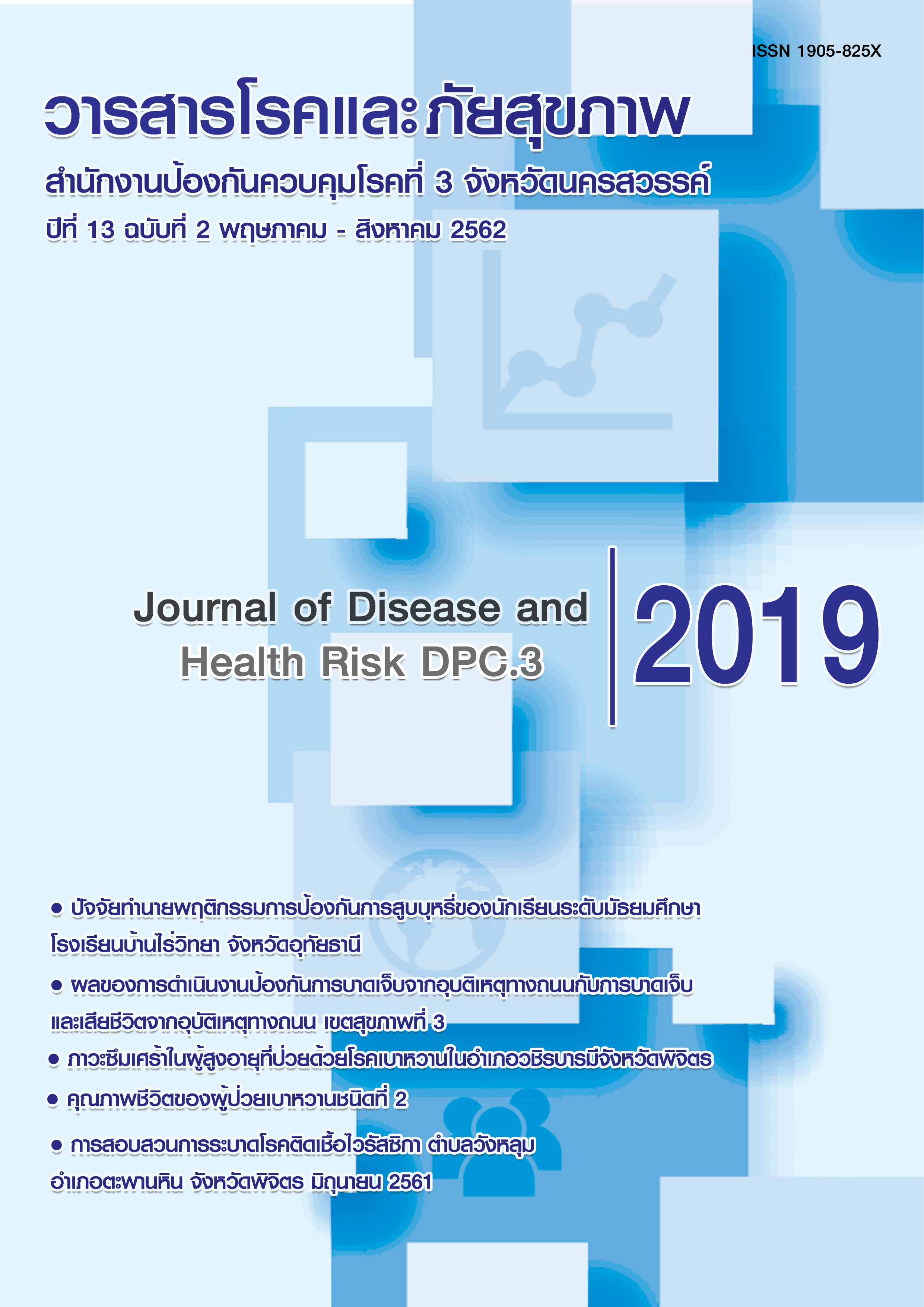 Article published in the Journal of Disease and Health Risk DPC.3 Nakhon Sawan. It is considered a work of academic research and analysis as well as the personal opinion of the author. It is not the opinion of the Office of Disease Prevention and Control 3, Nakhon Sawan. Or the editorial team in any way Authors are responsible for their articles.