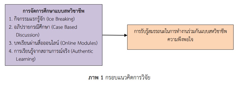ผลของการจัดการศึกษาแบบสหวิชาชีพต่อการรับรู้สมรรถนะในการทำงานร่วมกัน แบบสหสาขาวิชาชีพในการดูแลผู้ป่วยโดยใช้ครอบครัวเป็นศูนย์กลาง ของนักศึกษาพยาบาลศาสตรบัณฑิต และนักศึกษาแพทยศาสตรบัณฑิต