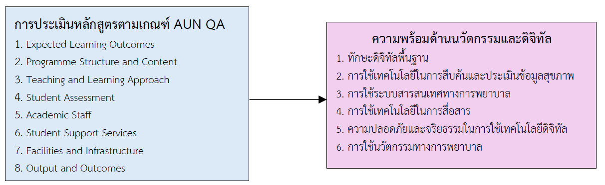 ความสามารถในการทำนายของคุณภาพหลักสูตรตามเกณฑ์การประกันคุณภาพการศึกษา เครือข่ายมหาวิทยาลัยอาเซียน (ASEAN University Network Quality Assurance: AUN QA) ต่อความพร้อมด้านนวัตกรรมและดิจิทัลของหลักสูตรพยาบาลศาสตรบัณฑิต วิทยาลัยพยาบาลบรมราชชนนี อุตรดิตถ์