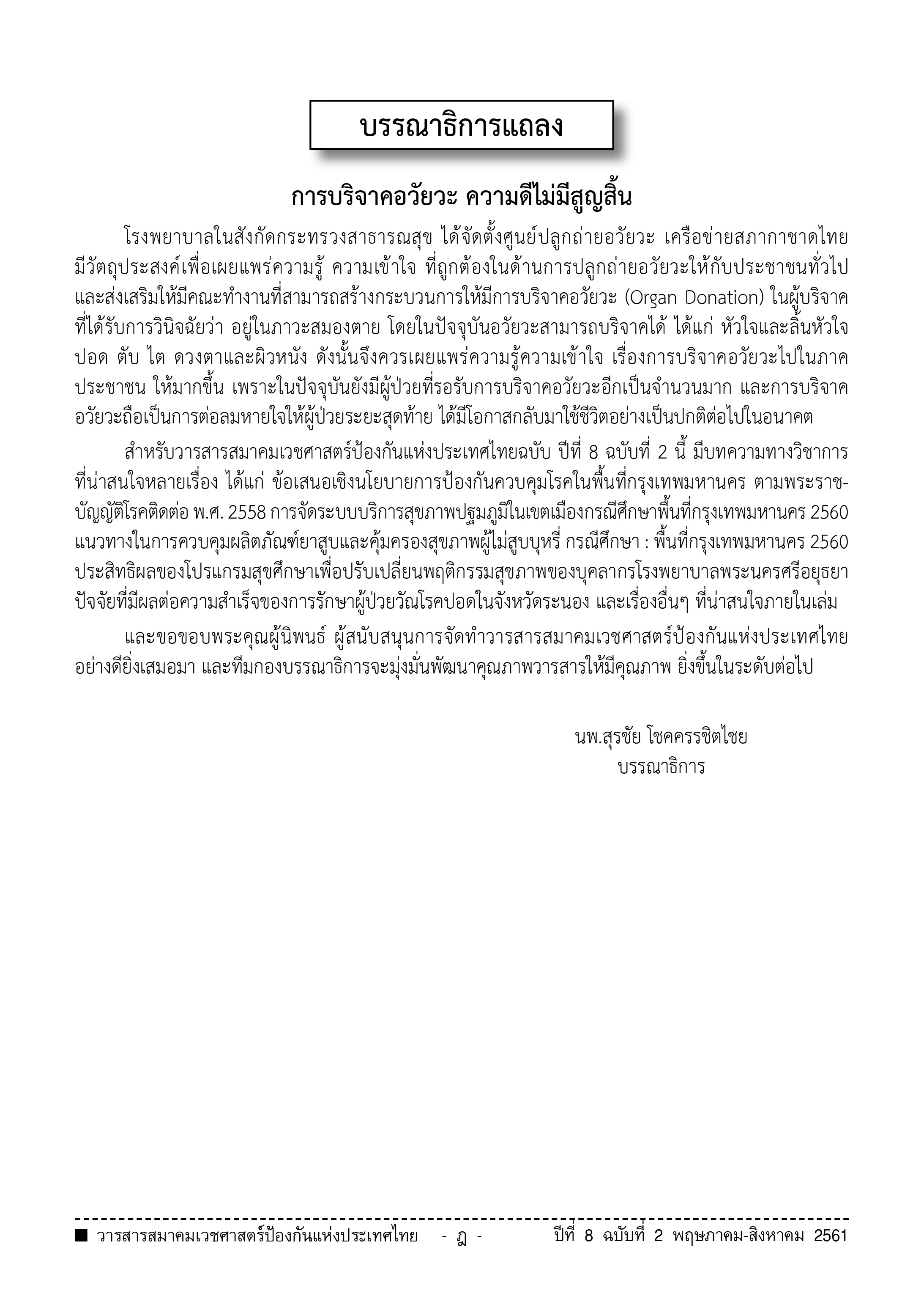 บรรณาธิการแถลง : การบริจาคอวัยวะ ความดีไม่มีสูญสิ้น