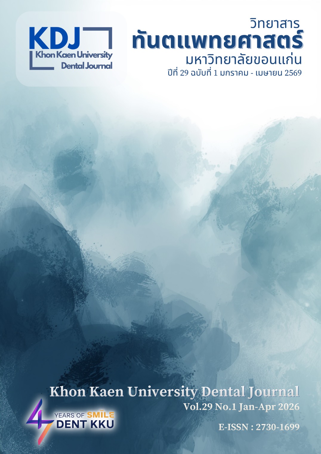 Khon Kaen University Dental Journal (Khon Kaen Dent J), so called KDJ, is an official, peer-reviewed publication of Khon Kaen University Faculty of Dentistry. It is published since 1998, with our main goal to increasingly disseminate the advanced knowledge and technologies related to the field of dentistry in the northeastern region of Thailand. Consistent with our mission to deliberately deliver the scientific novelty towards regional dental professionals, we have successfully published more than 350 original articles under our KDJ editorial team. Remarkably, we have nowadays gained attention at the national level as we are currently indexed in Thai-Journal Citation Index Center (TCI).