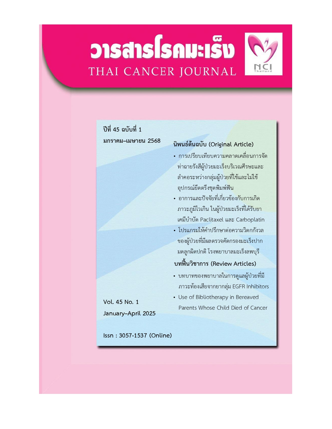 บทความทีตีพิมพ์ในวารสารโรคมะเร็งนี้ถือว่าเป็นลิขสิทธิ์ของมูลนิธิสถาบันมะเร็งแห่งชาติ และผลงานวิชาการหรือวิจัยของคณะผู้เขียน ไม่ใช่ความคิดเห็นของบรรณาธิการหรือผู้จัดทํา