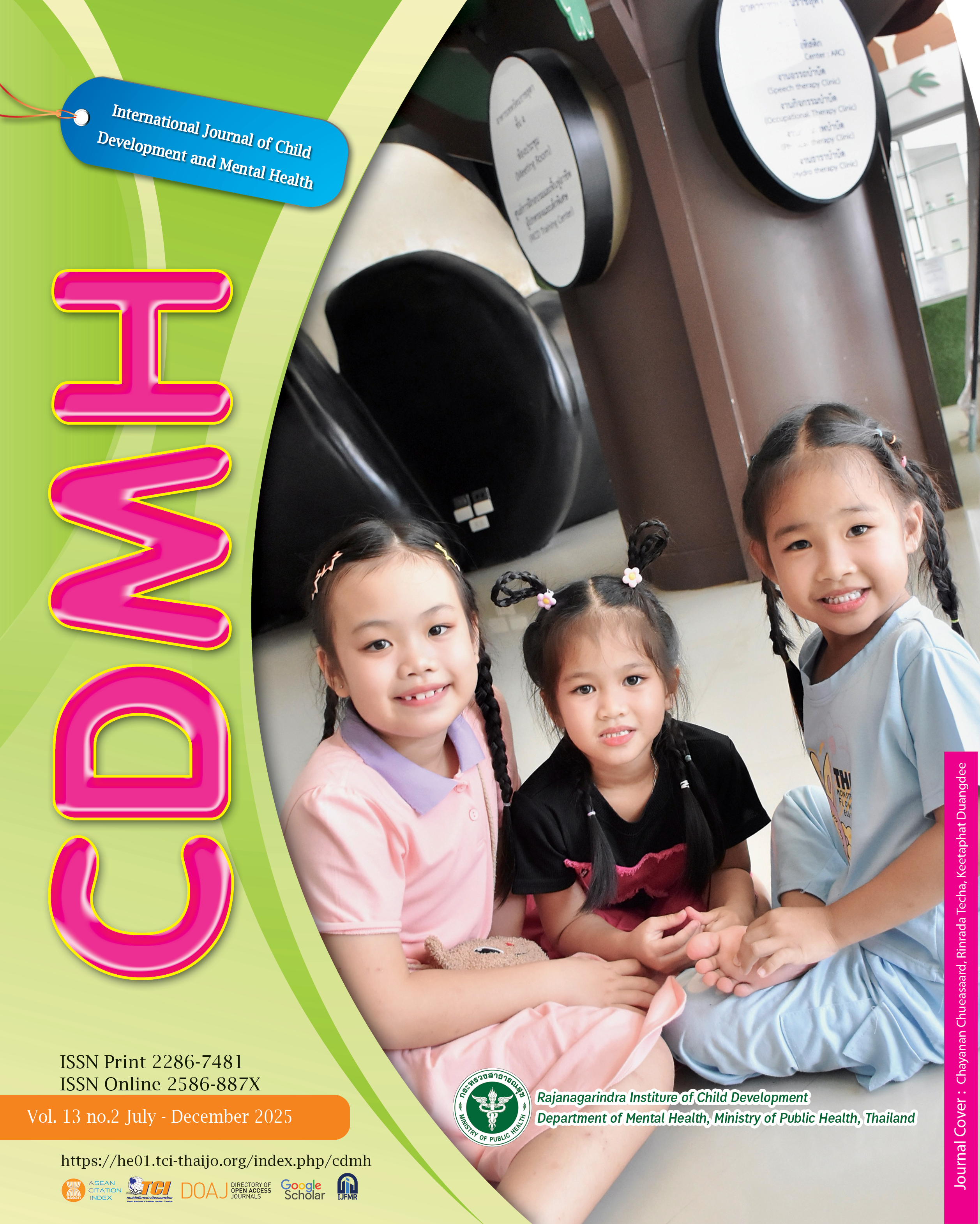 The main aim of the journal is to encourage scholars, health providers, and child development and Mental health specialists to publish scholarly articles that include original and review articles, case studies, case reports, miscellany and systemic reviews related to mental health and development across the lifespan. The Journal is published twice a year in January - June, and July - December by Rajanagarindra Institute of Child Development, Department of Mental Health, Ministry of Public Health, Thailand. This journal is the peer-reviewed journal.
