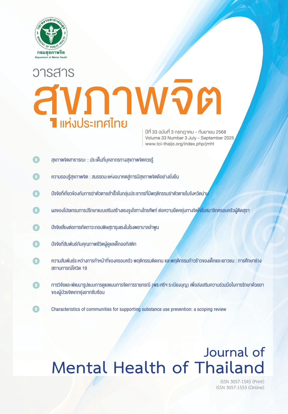 เรืองวิริยะนันท์ ช. ปัจจัยเสี่ยงต่อการเกิดภาวะถอนพิษสุรารุนแรงในโรงพยาบาลลำพูน. J Ment Health Thai [อินเทอร์เน็ต]. 24 กันยายน 2025 [อ้างถึง 5 ธันวาคม 2025];33(3):196-204. available at: https://he01.tci-thaijo.org/index.php/jmht/article/view/276079
