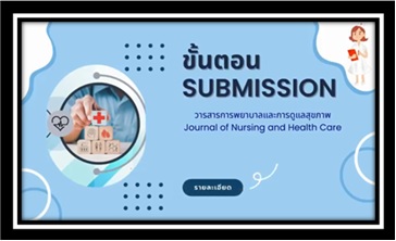 1. ผู้เขียนส่งไฟล์บทความไปยังระบบวารสารอิเล็กทรอนิกส์ของวารสารการพยาบาลและการดูแลสุขภาพ ในเว็ปไซด์ Thai Journals Online (ThaiJO) กองบรรณาธิการจะแจ้งให้ผู้วิจัยทราบว่าได้รับไฟล์บทความเป็นที่เรียบร้อย