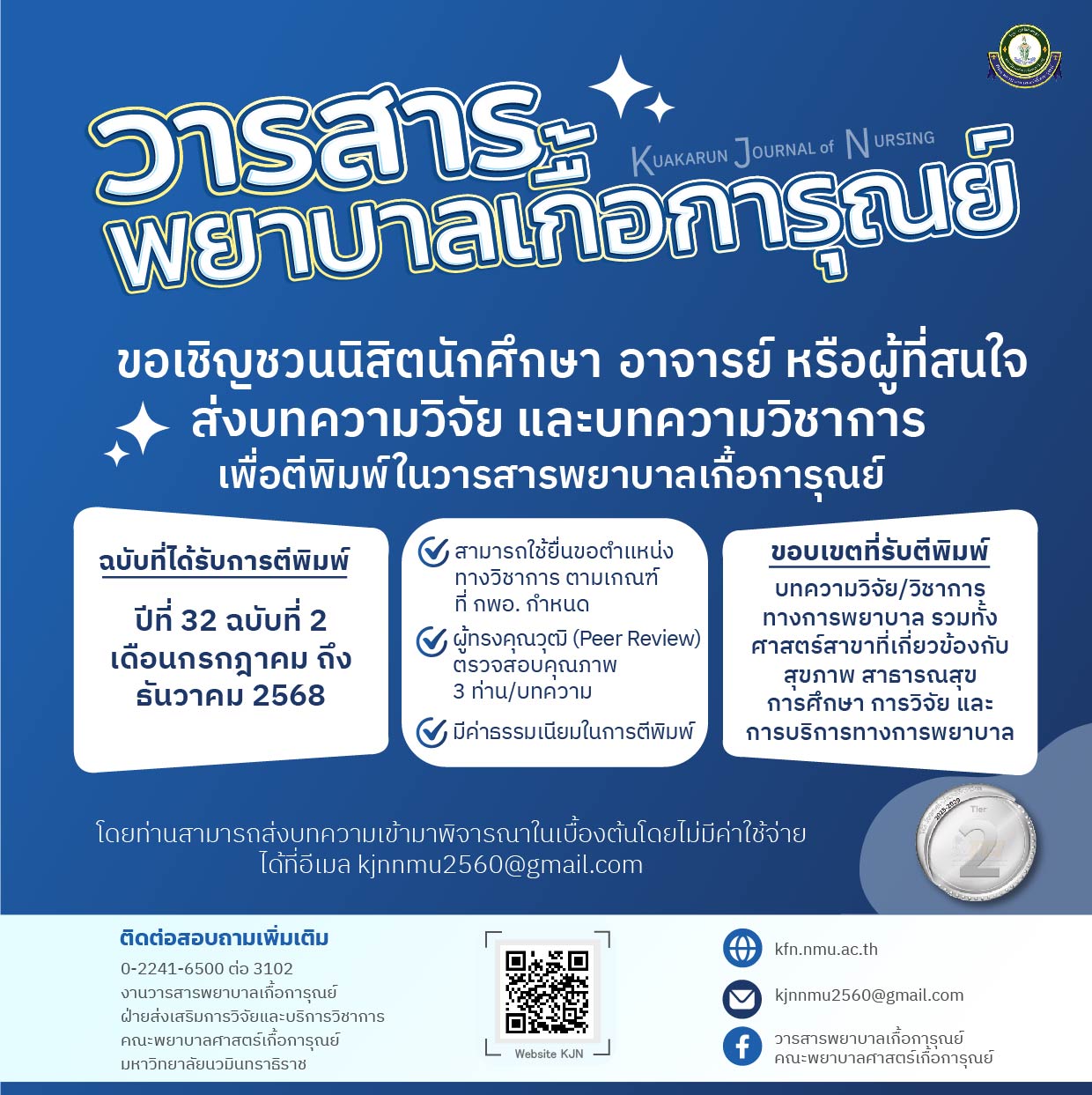 เผยแพร่เรียบร้อยแล้ว !! วารสารพยาบาลเกื้อการุณย์ ปีที่ 32 ฉบับที่ 2 (กรกฎาคม-ธันวาคม 2568)