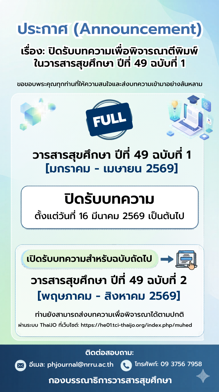 Journal Abbreviation: TH. J. of Health Edu. (ใช้สำหรับการอ้างอิง)