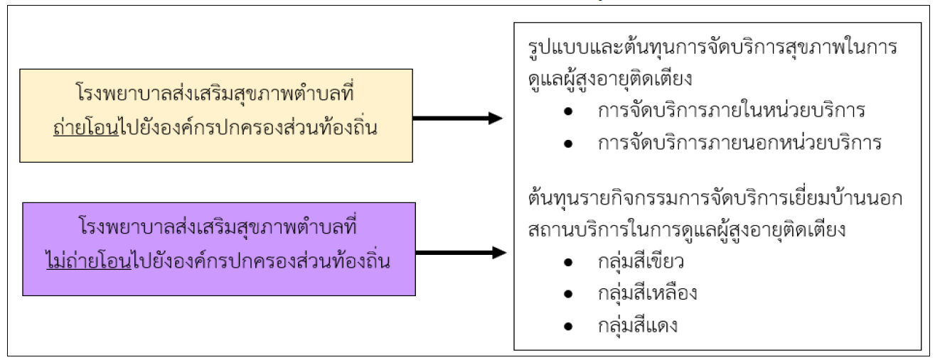การเปรียบเทียบรูปแบบและต้นทุนการดูแลผู้สูงอายุติดเตียงภายใต้เครือข่ายบริการปฐมภูมิโรงพยาบาลลำปางระหว่างโรงพยาบาลส่งเสริมสุขภาพตำบลถ่ายโอนและไม่ถ่ายโอนไปยังองค์กรปกครองส่วนท้องถิ่น