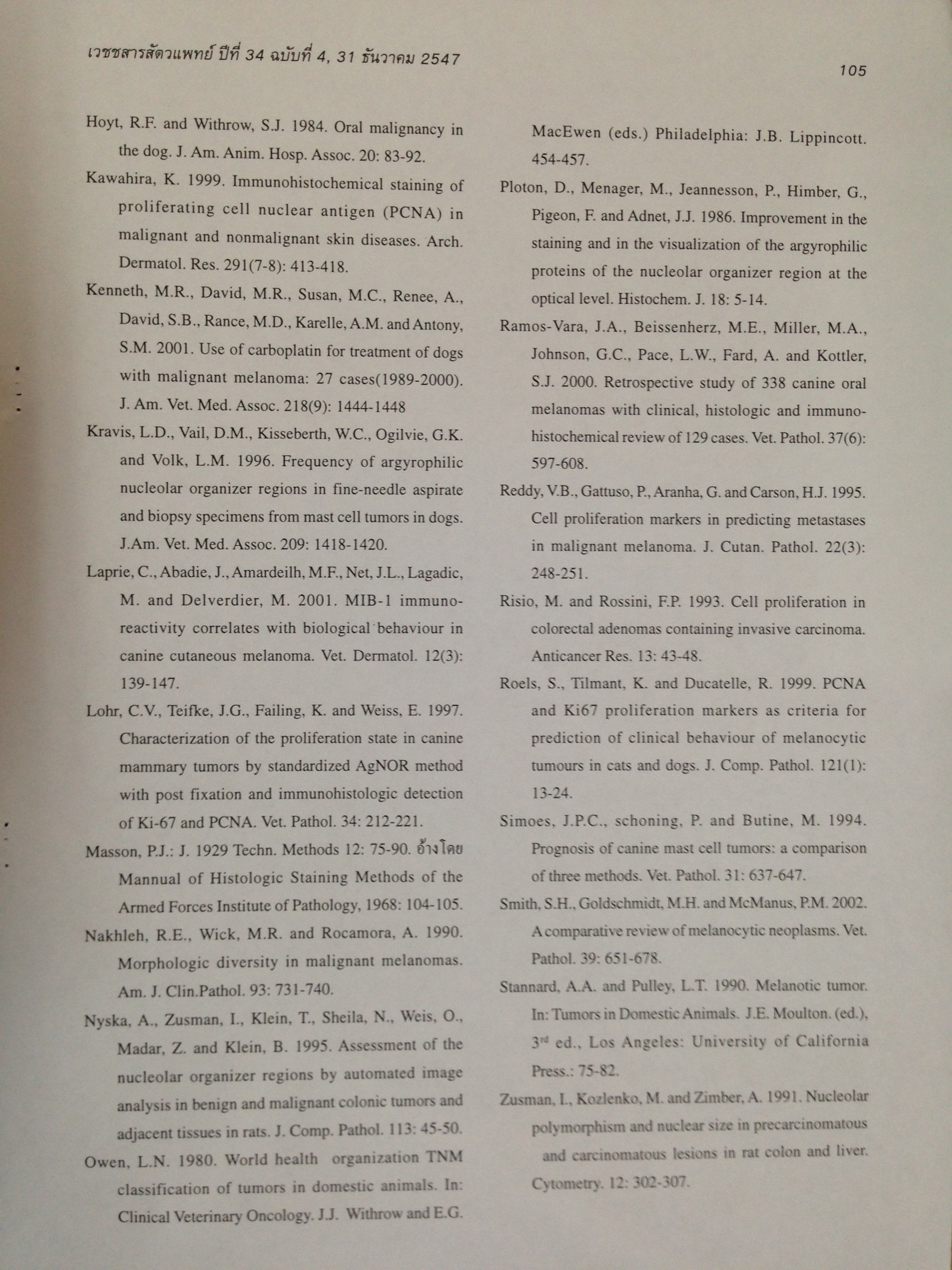 The Relationship between AgNORs and PCNA Indices, Histopathological Appearance and Clinical Factors, as Prognostic Factor for Canine Oral Melanoma